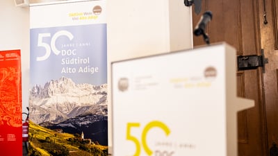 Esattamente 50 anni fa, il 14 aprile 1975, è stata introdotta la denominazione di origine DOC Alto Adige – una giornata storica dal punto di vista dell'economia vinicola locale, come ha affermato oggi Andreas Kofler, Presidente del Consorzio Vini Alto Adige, durante la celebrazione organizzata in collaborazione con la Camera di commercio al Palazzo Mercantile di Bolzano.